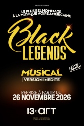 Après un triomphe à Paris et une tournée dans les Zéniths de France, Black Legends revient au 13ème ART à partir du 26 novembre avec une NOUVELLE PLAYLIST qui revisite plus de 30 morceaux emblématiques de la musique afro-américaine.