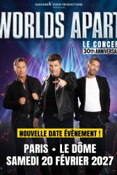 Icônes pop des années 90, le groupe Worlds Apart célèbre cette année un anniversaire exceptionnel : 30 ans de carrière ! Pour marquer cet événement, Steve, Nathan et Cal se réunissent pour une tournée placée sous le signe de la nostalgie, de l’énergie et de l’émotion.